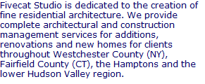 “Fivecat Studio”, the Fivecat Logo and “The Art and Craft of Fine Living” are servicemarks owned by McCarthy LePage Architects, PC.